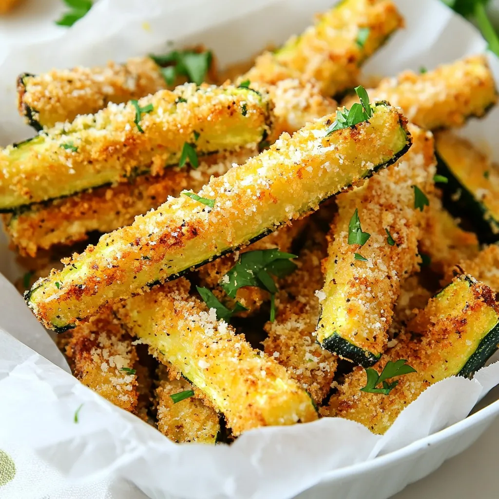 For an appealing presentation, serve the zucchini fries in a small basket lined with parchment paper and garnish with extra grated Parmesan cheese and fresh parsley.