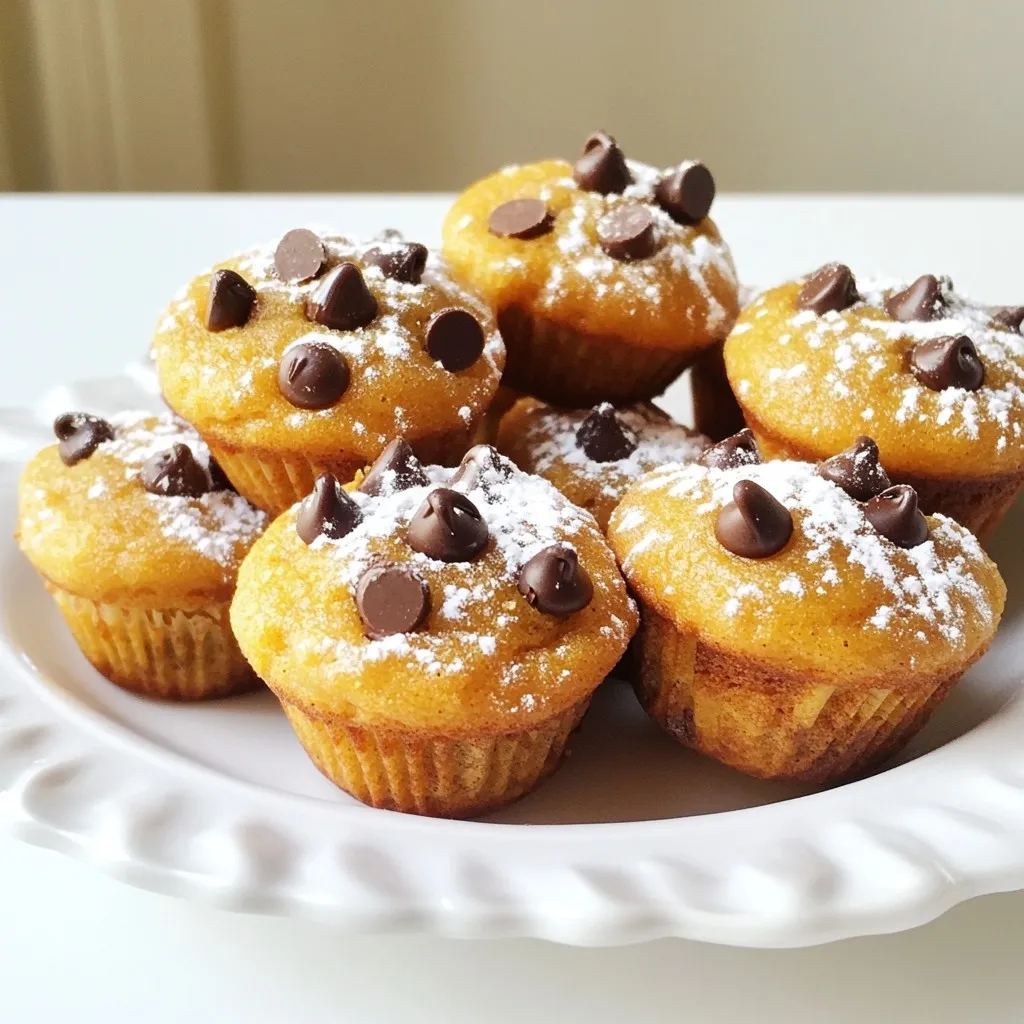 Once cooled, lightly dust the muffins with powdered sugar for an elegant touch. Present them on a rustic wooden platter or a vibrant dotted plate to enhance their festive appeal. For added decoration, try placing a few chocolate chips on top of each muffin before serving.