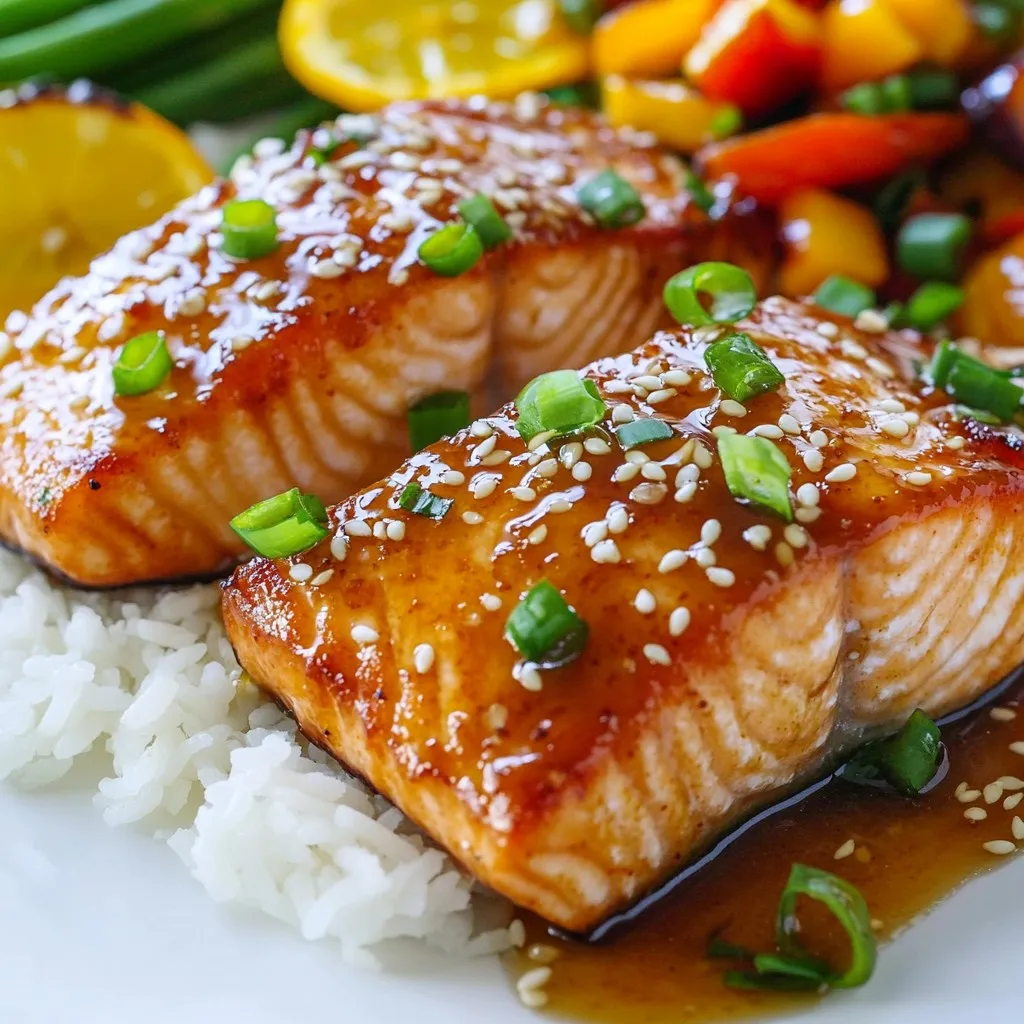 A savory-sweet salmon dish glazed with a honey garlic marinade.