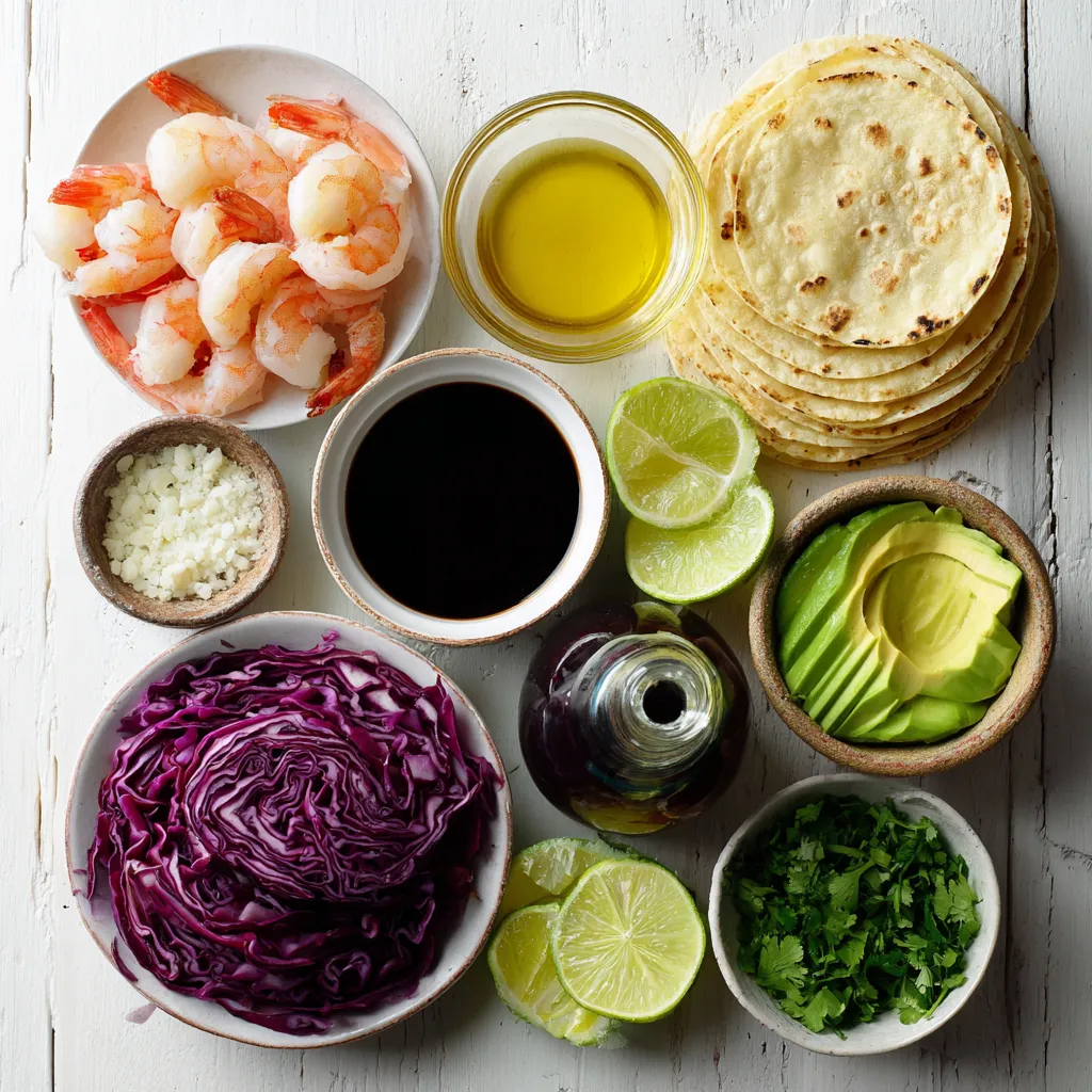 This recipe includes both fresh and pantry staples. The fresh ingredients are shrimp, ginger, lime, avocado, and cilantro. These ingredients add bright flavors and textures. For the pantry items, you will use honey, soy sauce, and olive oil. They provide a sweet and salty base for the shrimp. Garlic brings depth and aroma, while red cabbage adds crunch.