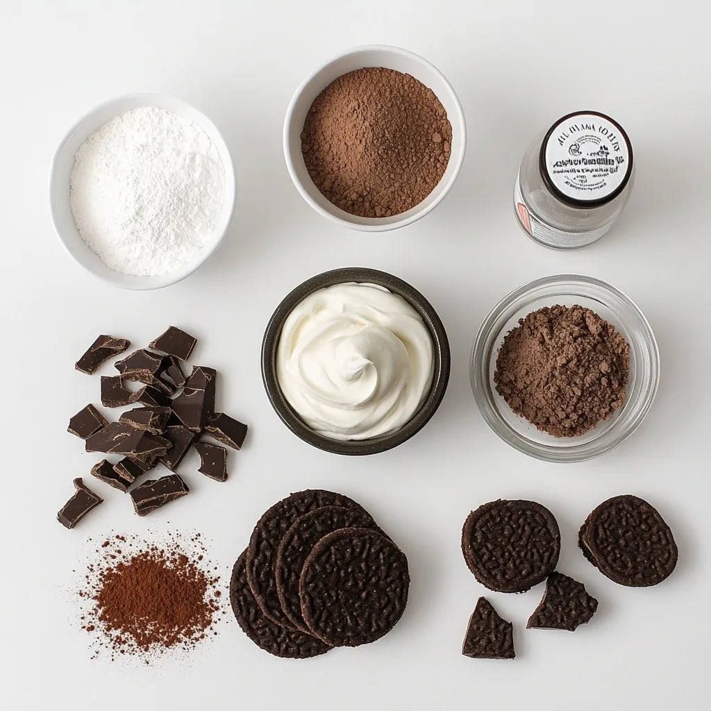 You will need heavy whipping cream that is chilled. This cream will whip up light and fluffy. Also, grab mascarpone cheese. It’s smooth and creamy, perfect for mixing. Don’t forget powdered sugar, as it adds sweetness. Pure vanilla extract gives a lovely aroma. Lastly, we’ll use cocoa powder for dusting and garnishes like chocolate shavings or crushed Oreos for a pretty finish.