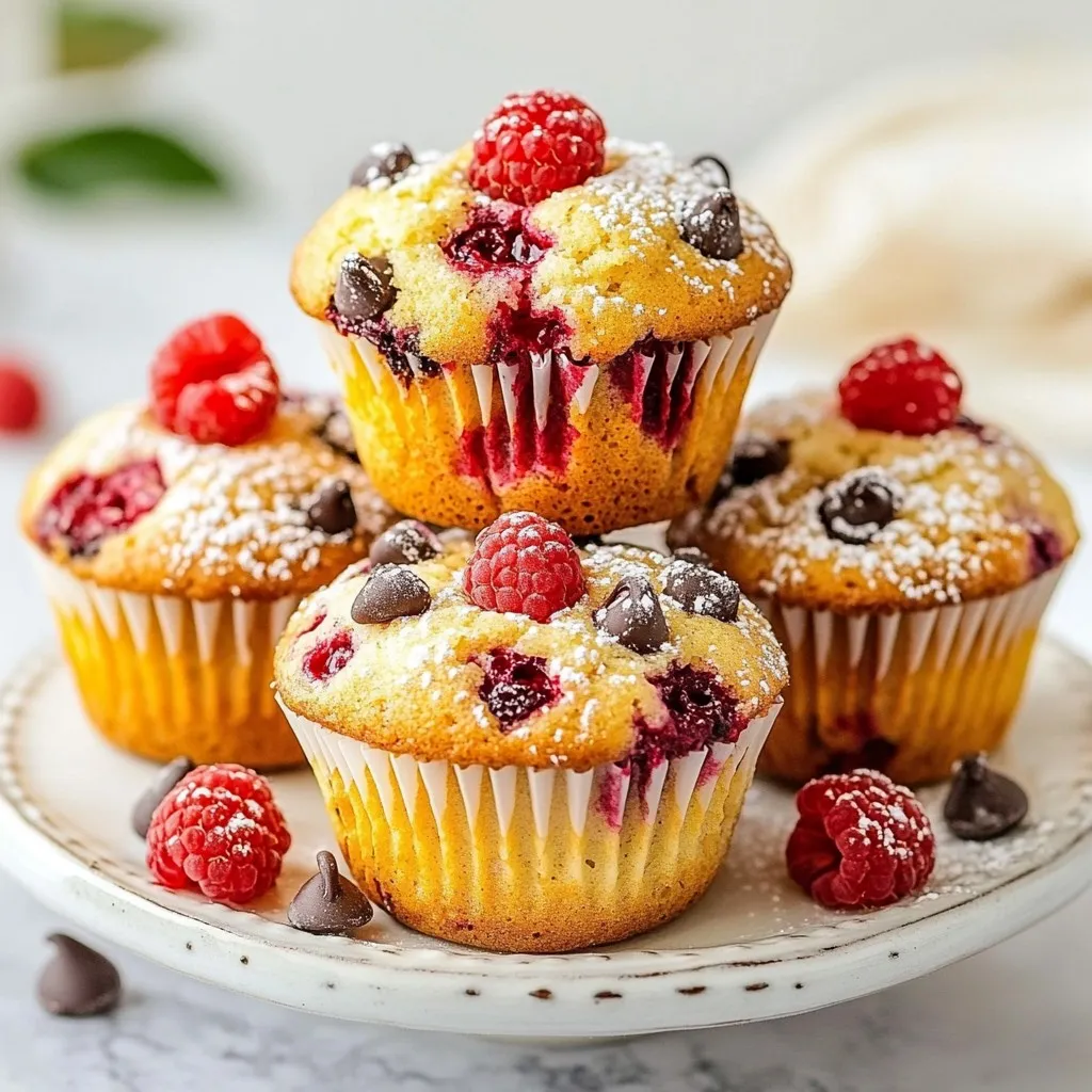 Delicious muffins filled with fresh raspberries and chocolate chips, perfect for breakfast or a sweet snack.