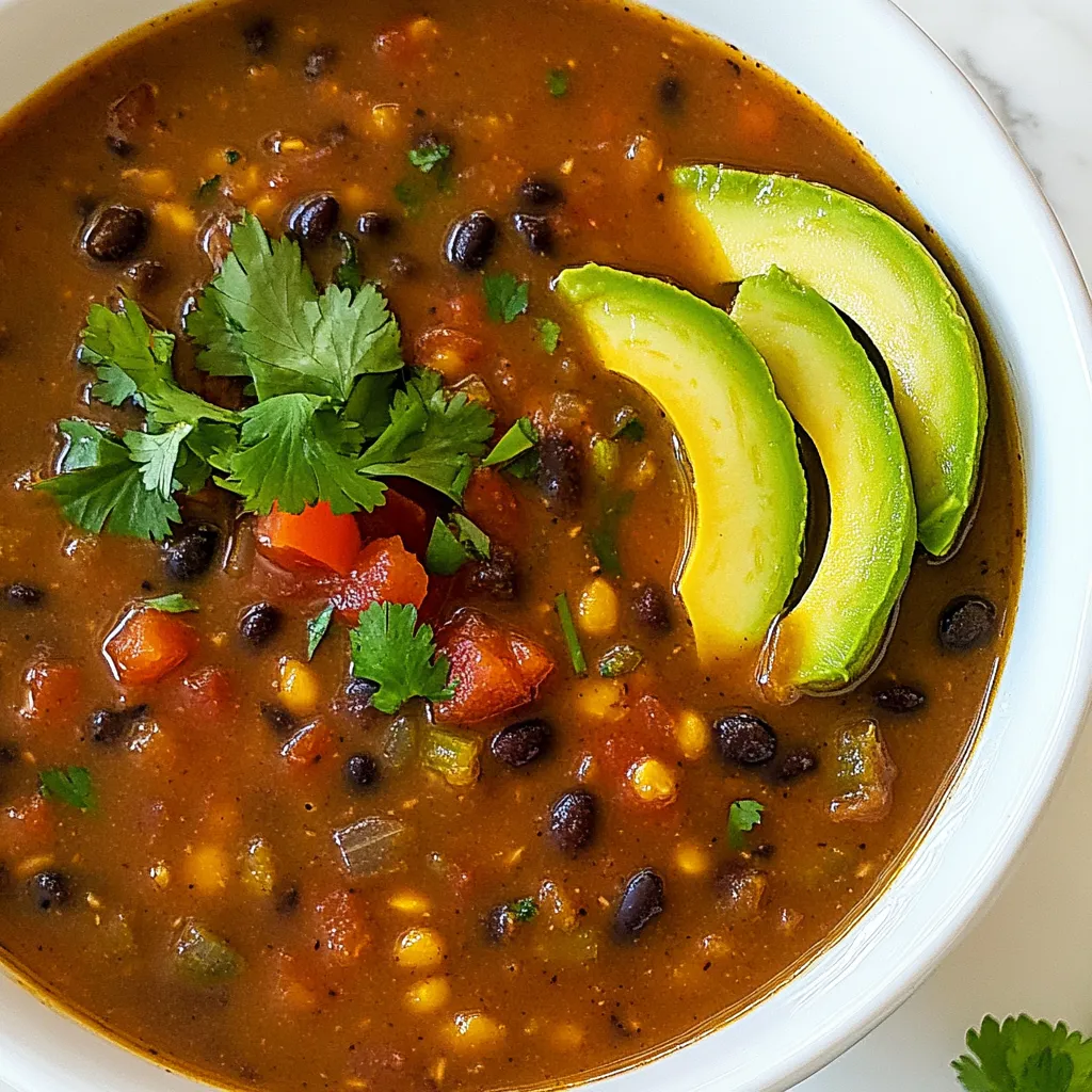 Spices like cumin, paprika, and chili powder form the heart of the soup’s flavor. Adjust the cayenne pepper to suit your taste. Finally, lime juice brightens the soup, while cilantro and avocado make perfect garnishes. They add freshness and a creamy texture, enhancing your dish.
