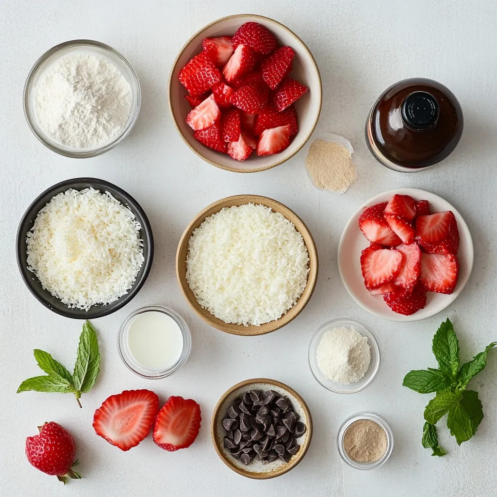 When I make strawberry coconut macaroons, I focus on the main ingredients first. The shredded unsweetened coconut adds a great texture. It pairs perfectly with the fresh strawberries. The sweetened condensed milk binds everything together and adds sweetness.