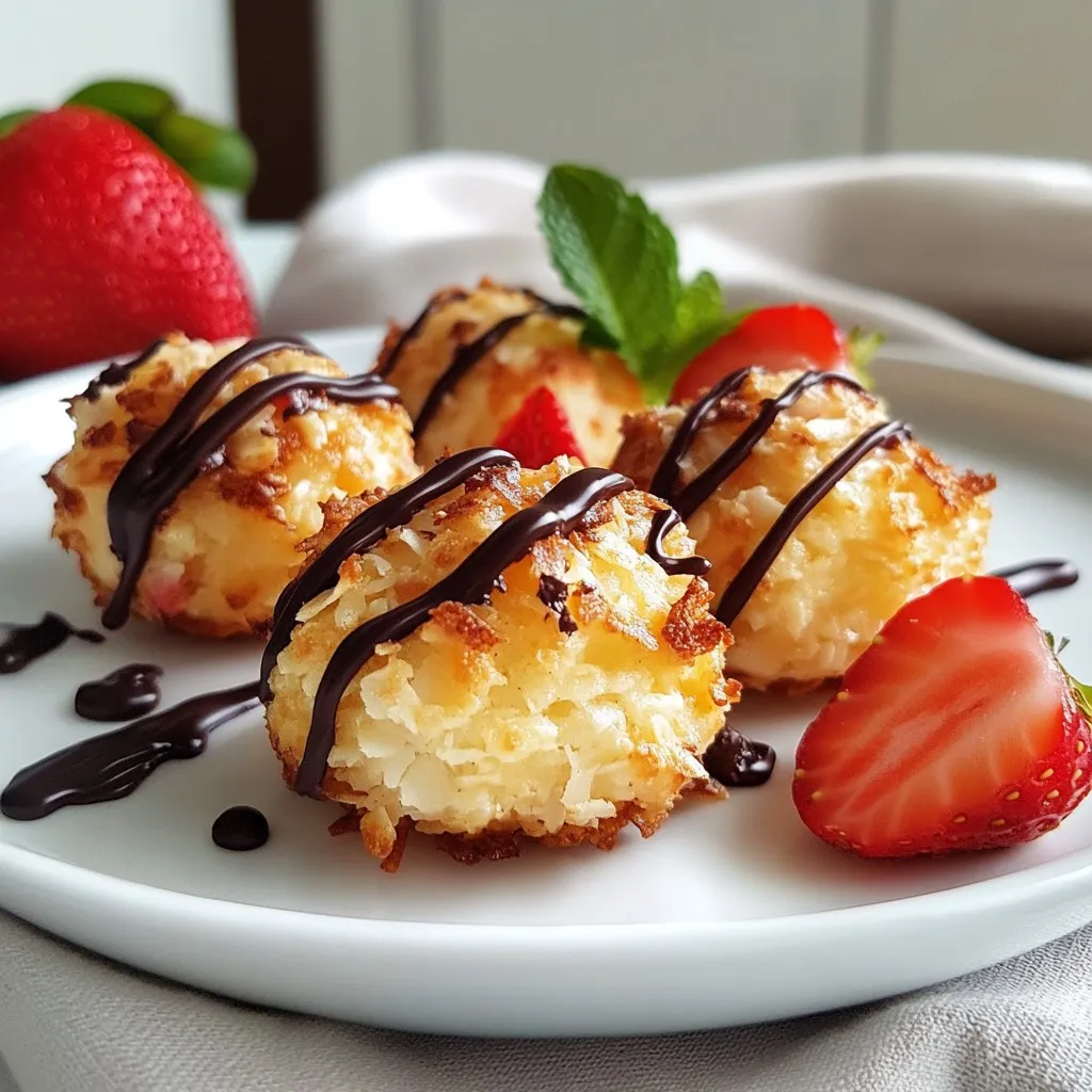 Using unsweetened coconut is key for macaroons. It keeps the flavor balanced. Sweetened coconut can make them too sweet. You want the taste of fresh strawberries to shine. The mixture should feel sticky yet hold its shape. This makes it easy to form into balls.