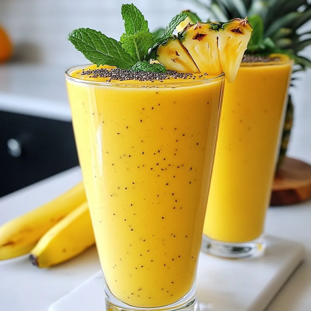 This smoothie shines with ripe bananas. They add creaminess and natural sweetness. Frozen pineapple chunks bring a taste of the tropics. They also keep the smoothie cold and refreshing.